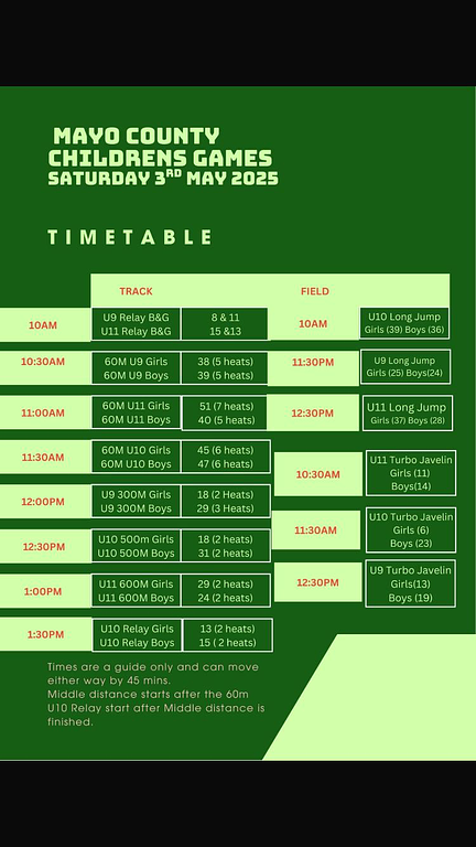 A big thank you to Swinford AC for hosting this event once again. They always put on a fantastic competition, and we greatly appreciate the effort, planning, and support of all the officials and volunteers involved.